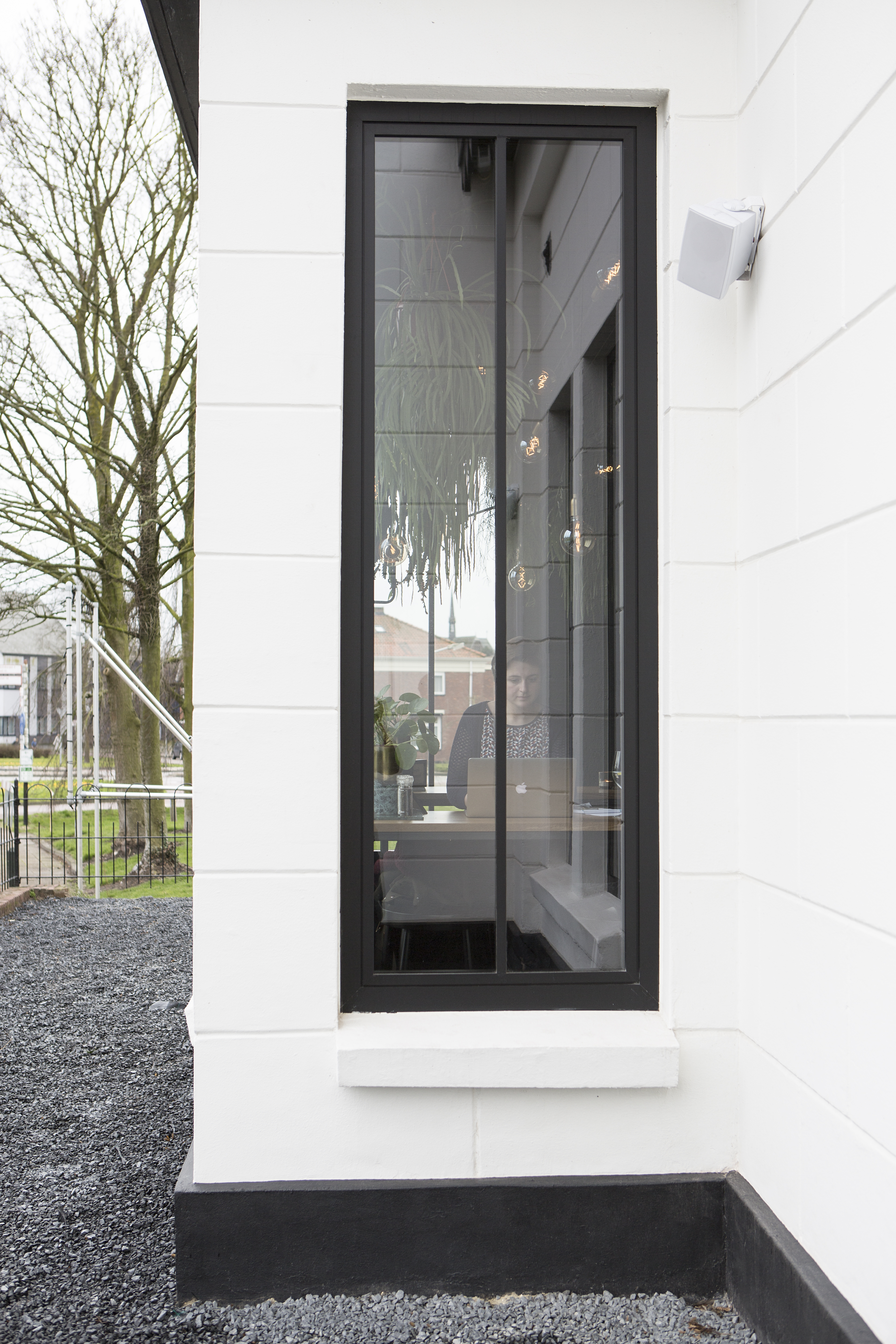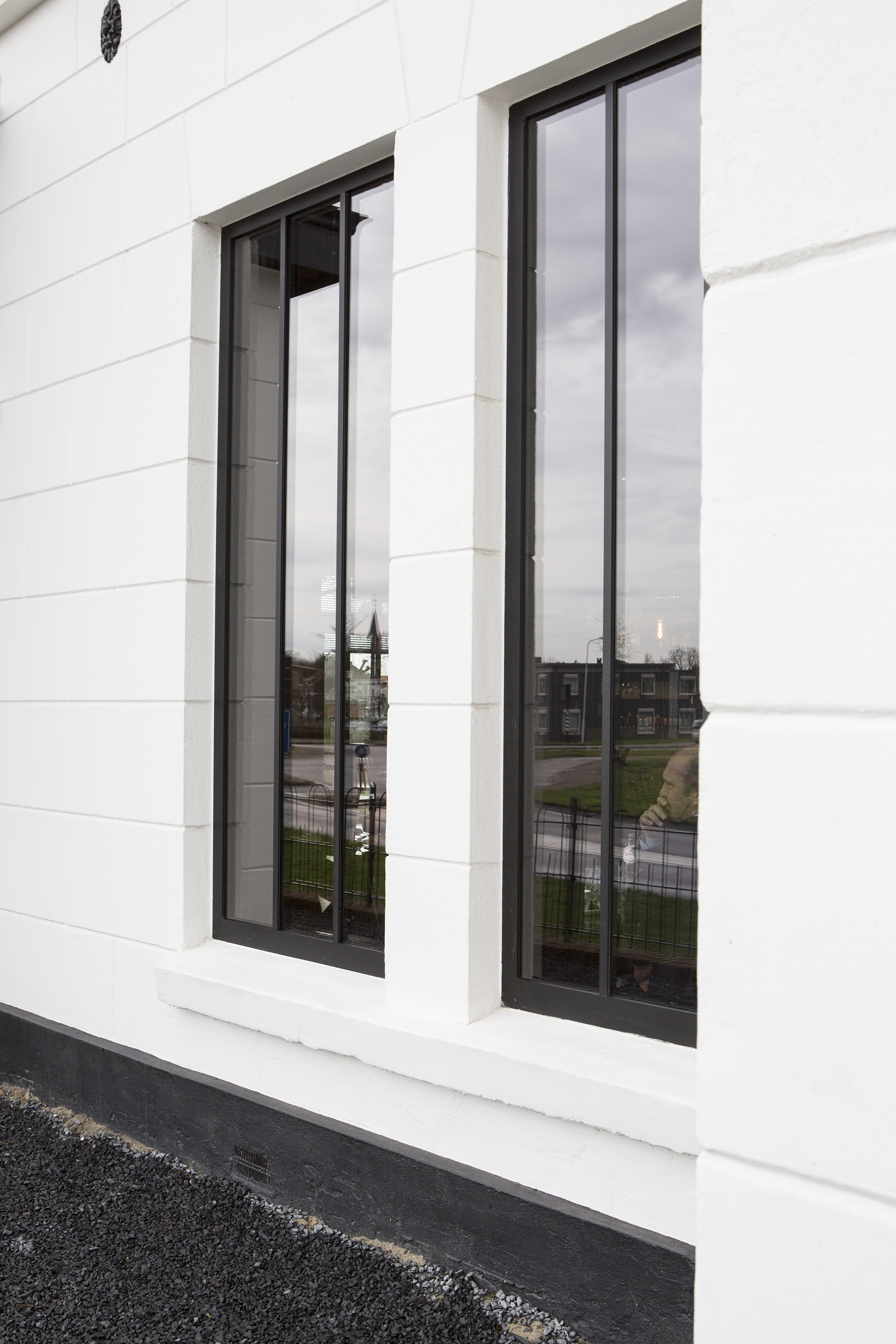Donker aluminium voor witte gevel in Goor