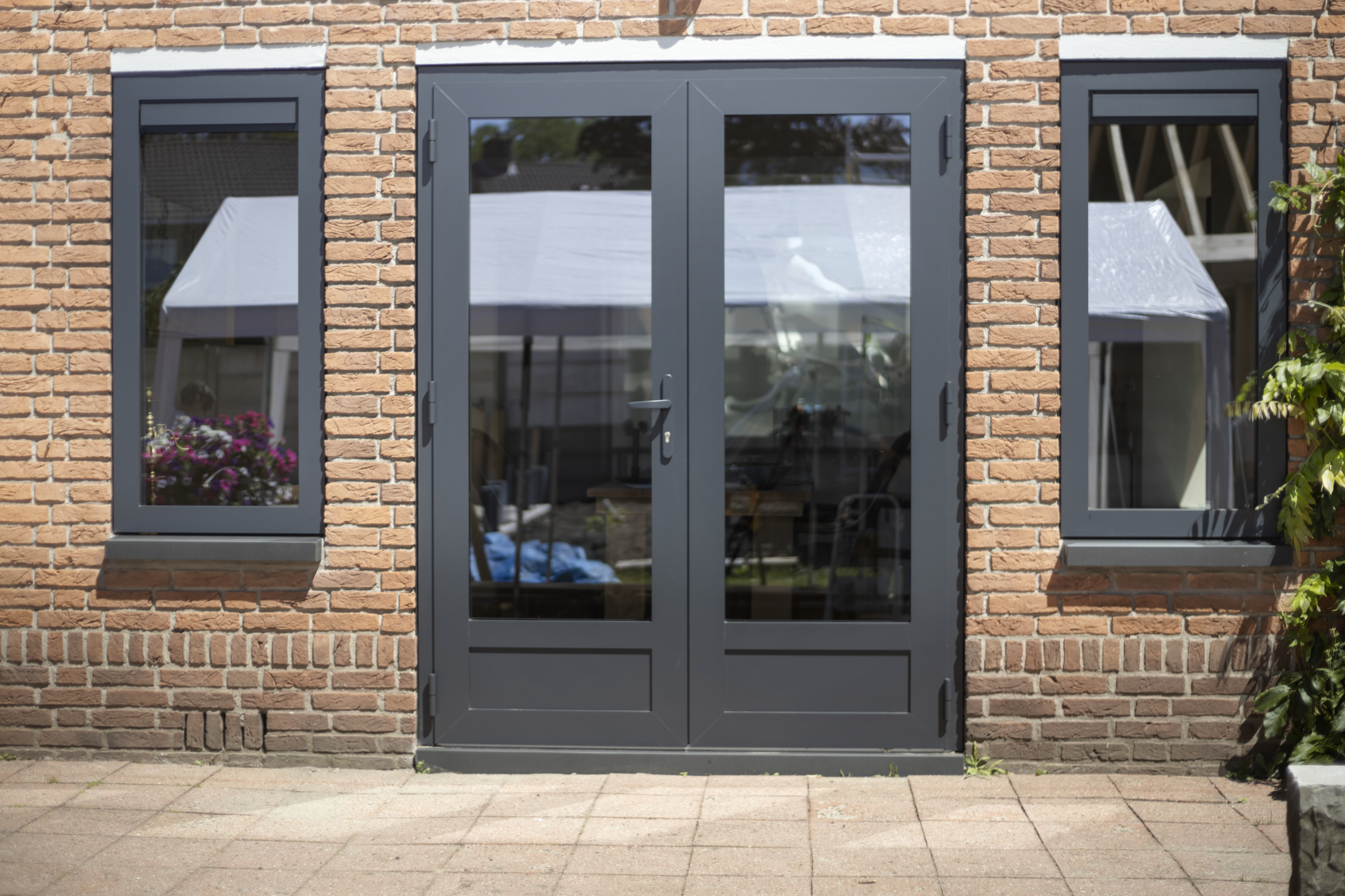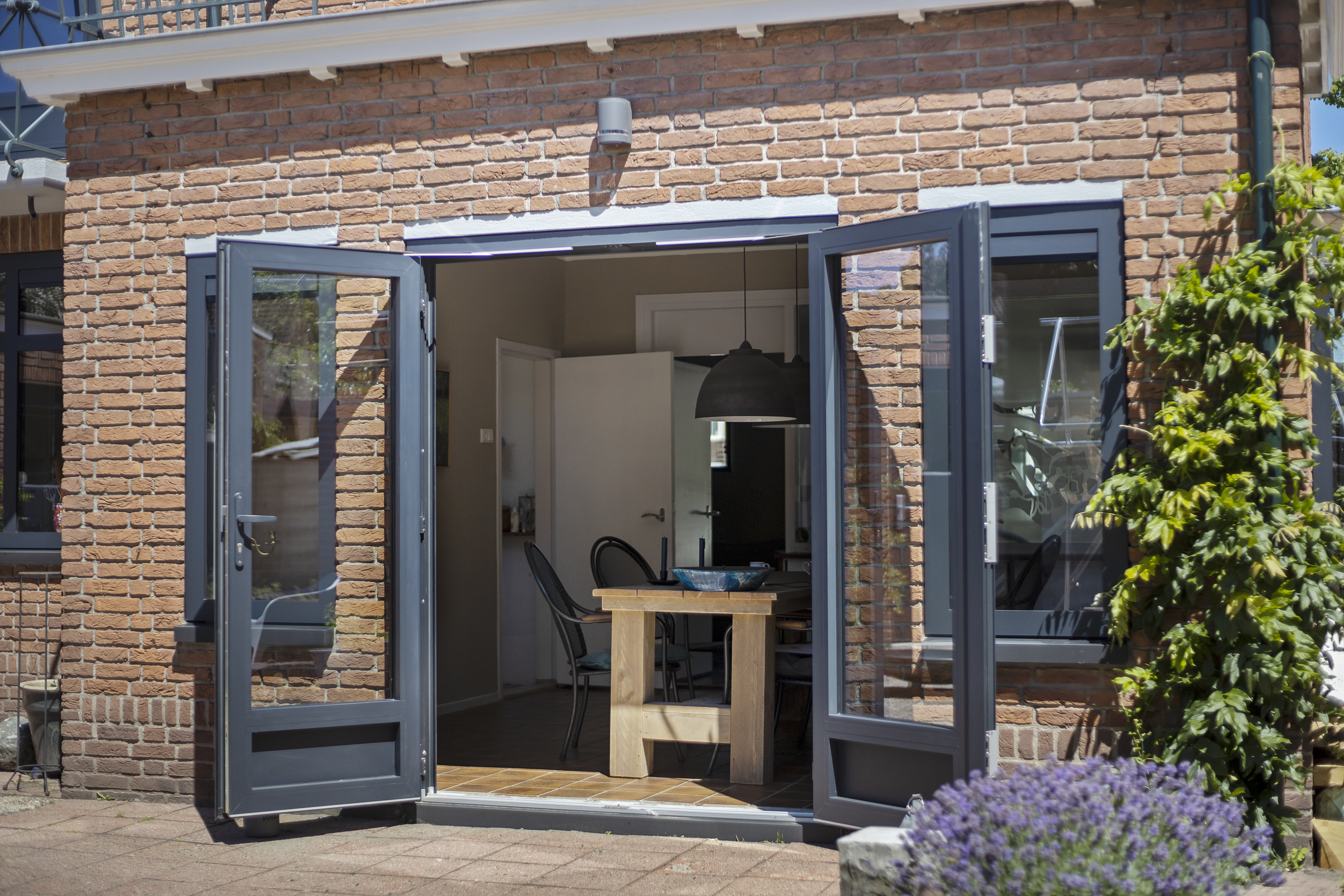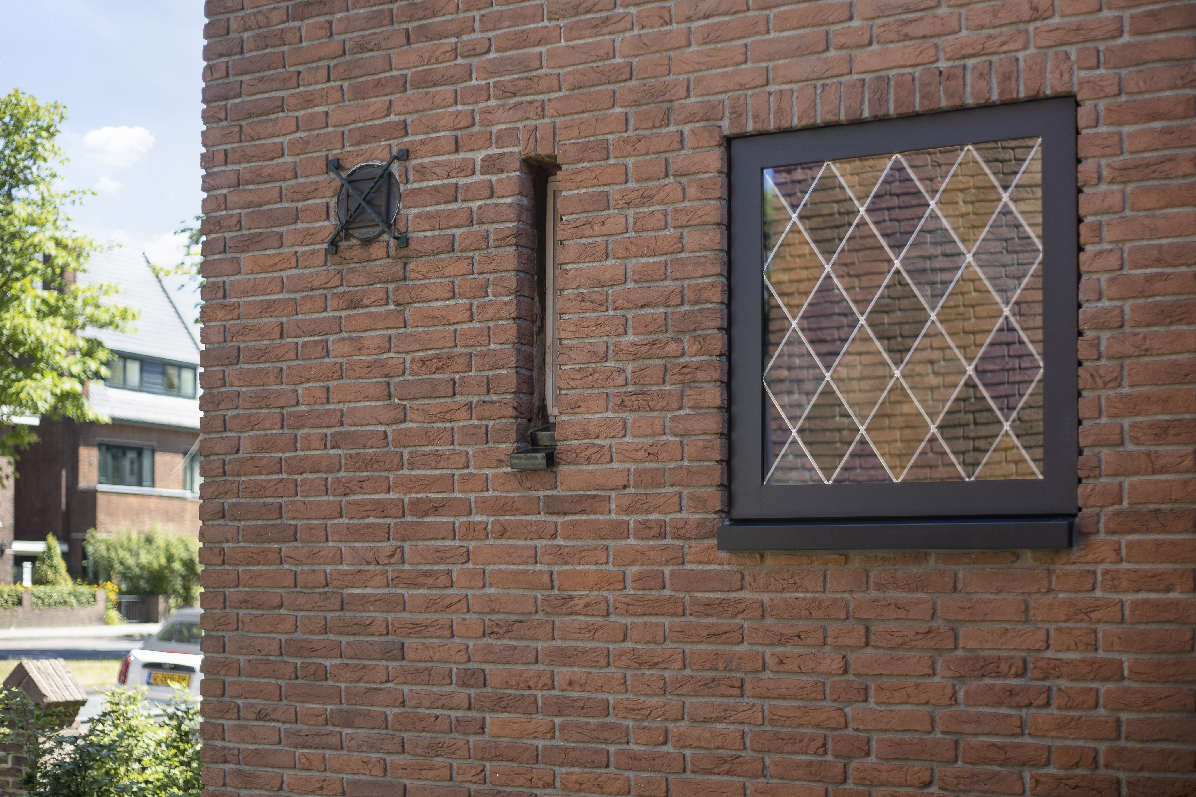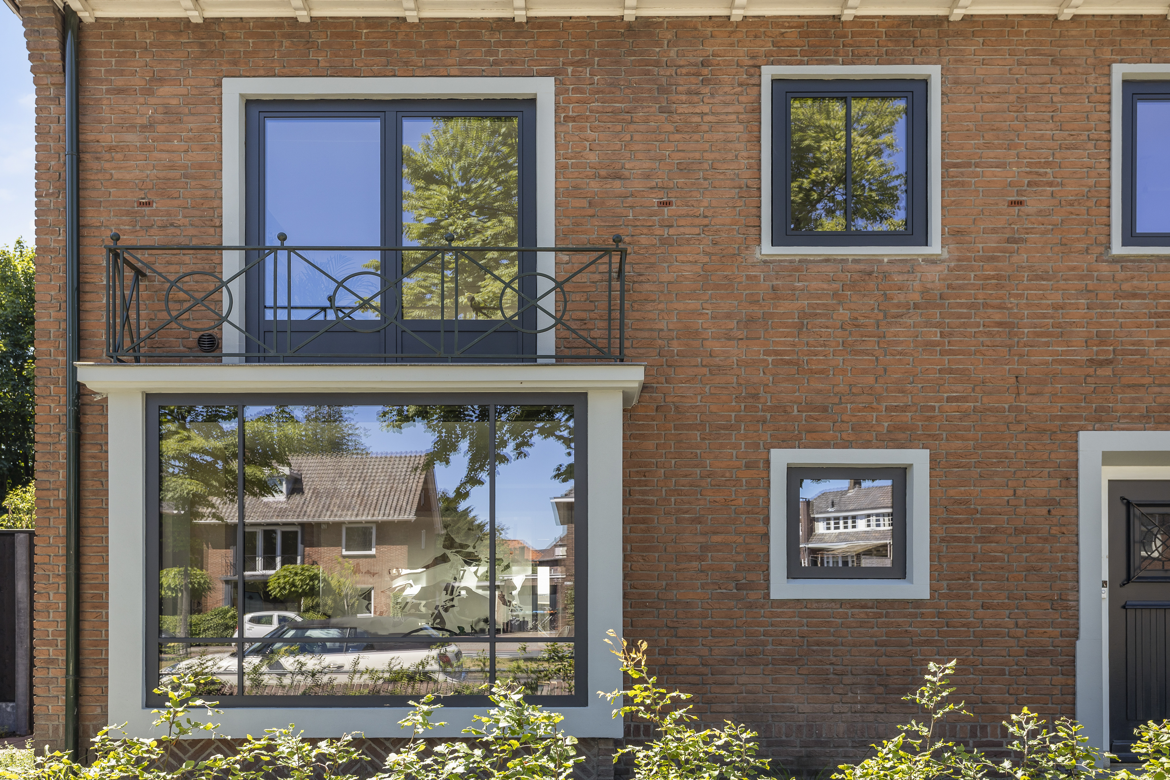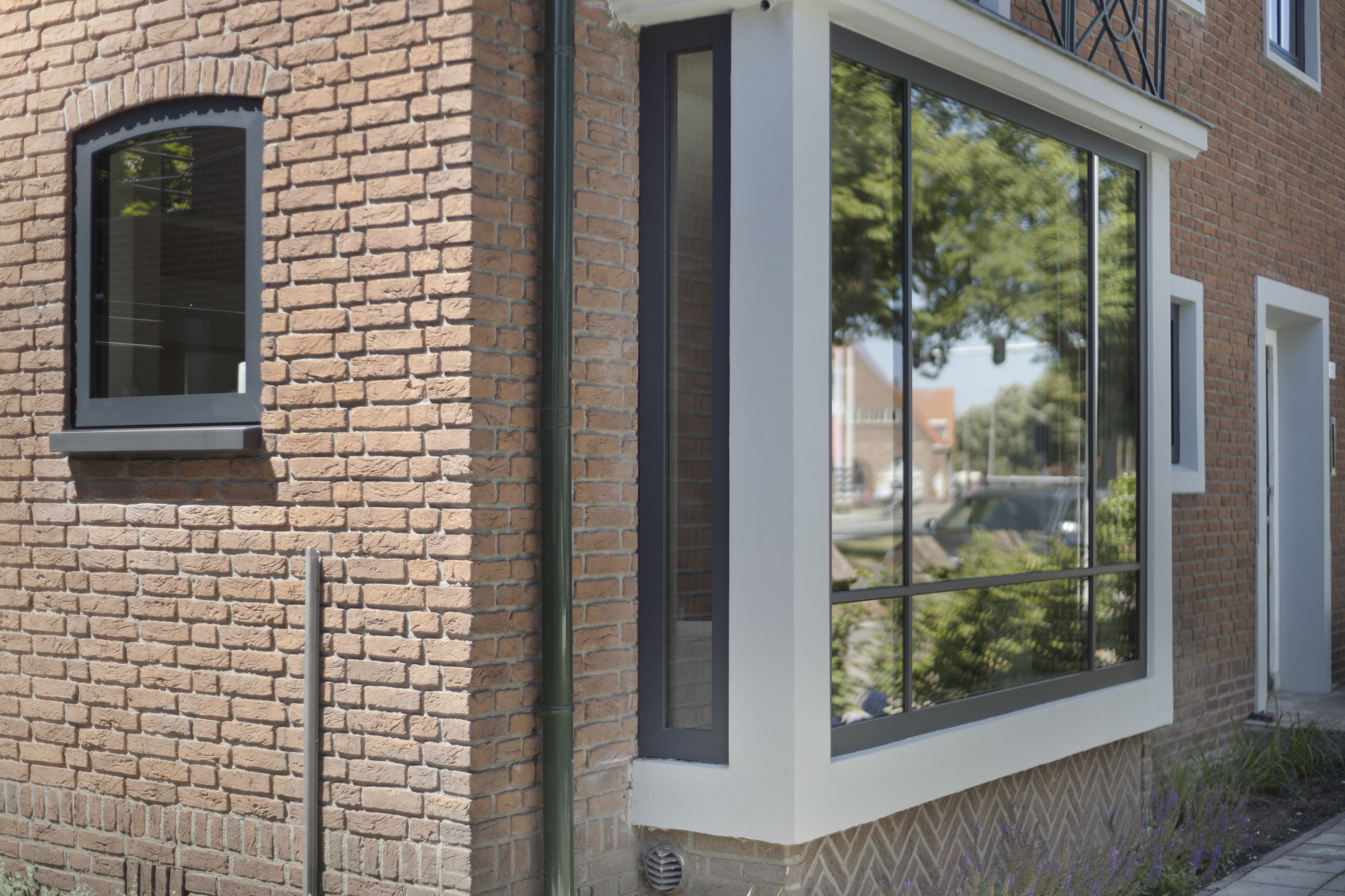 Strak aluminium én een kleurrijk glas-in-loodkozijn te Enschede